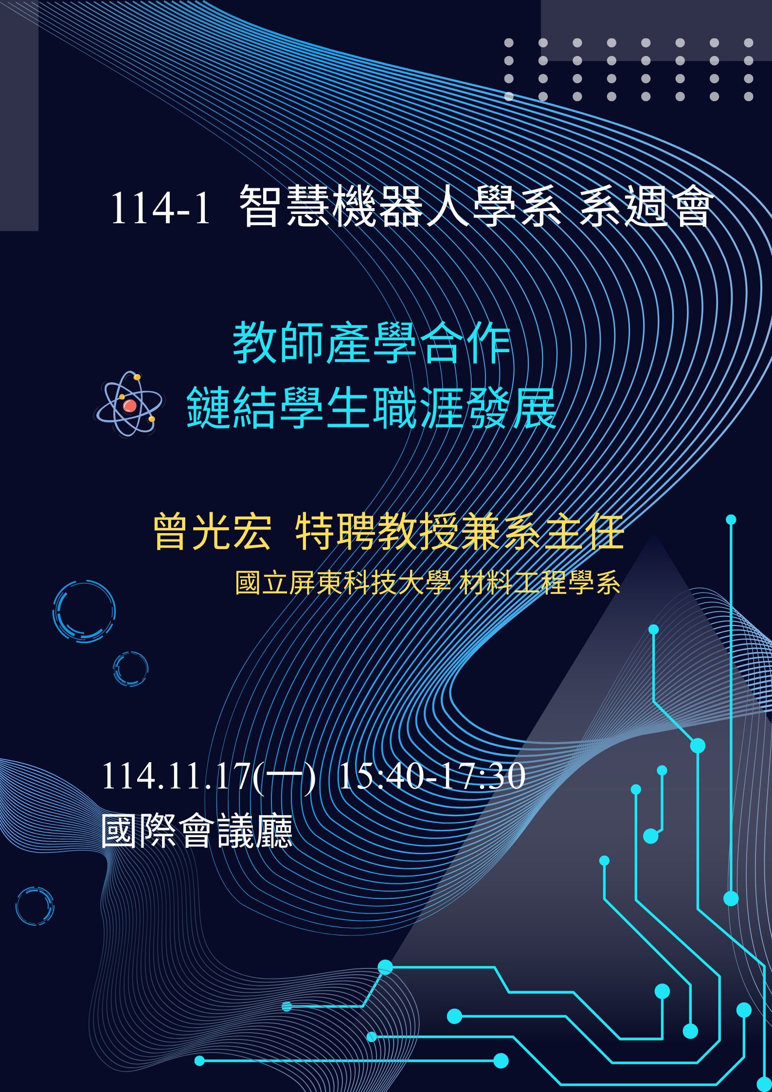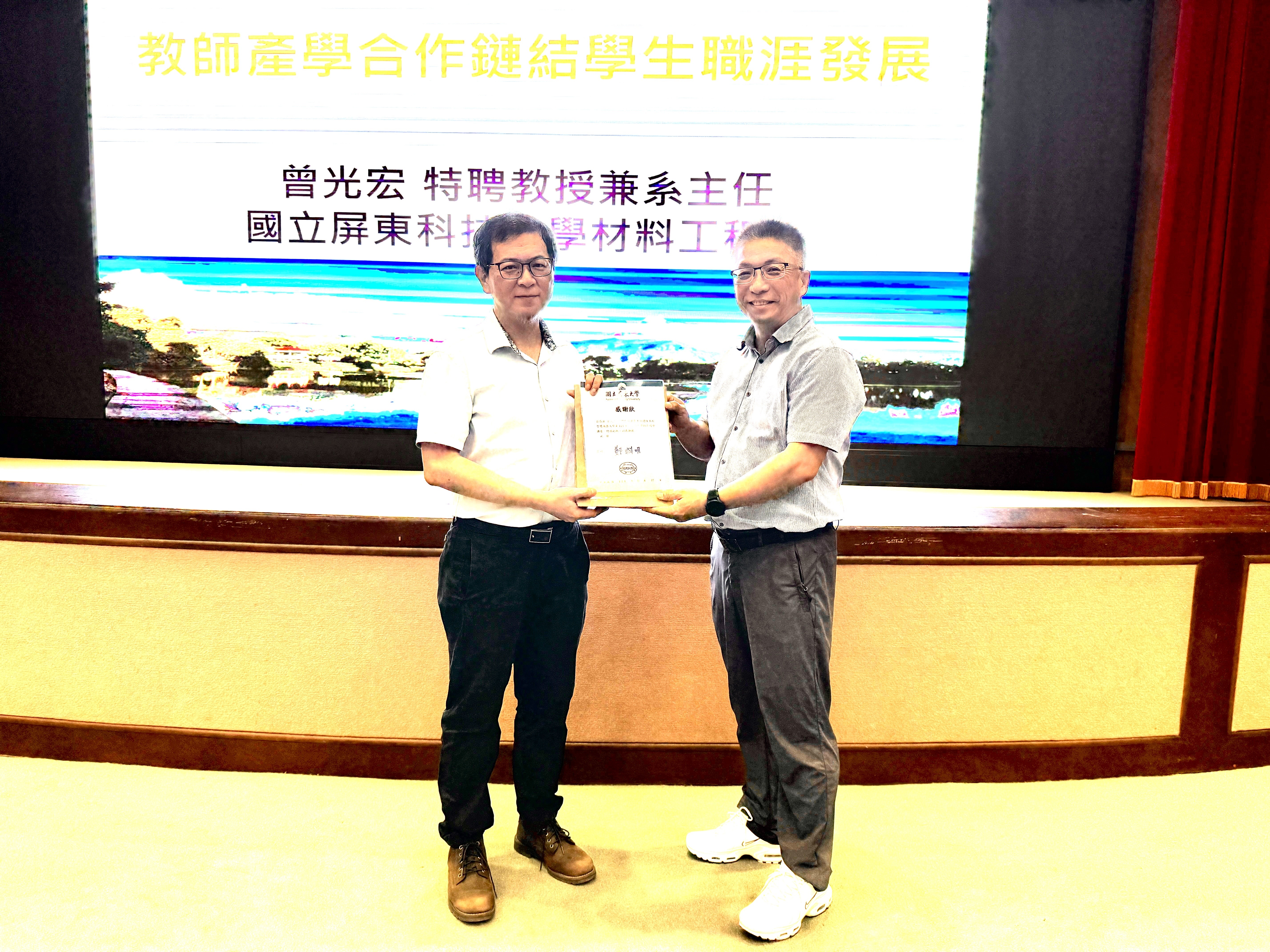 這次特別邀請屏東科技大學材料工程系曾光宏系主任來與學生們分享有關職涯規畫以及產學合作的實質效益,透過這次講座讓學生們可以更了解在踏入職場之前需要做足的準備,首先是要了解自己的價值、興趣及實力,除了可以提高求職率也能降低焦慮。接下來就是透過介紹產學合作,在做中學學中做的同時也可以知道自己對這份工作的喜愛程度以及適不適合自己,是一個難能可貴的機會。聽完講座希望學生們都可以更認識自己,找到自己的方向及價值。